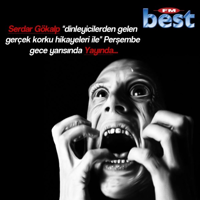 +3 -1Hangi altinciyi seceyim ona bile karar veremedim... Evet arkadaşlar Best fm de Serdar Gökalp diye Türkiye nin en iyi radyocularından birinin Perşembe gecelerine özel korku programı var şuan olduğu gibi . Olayı başına gelen kişiler anlatıyor... korkmak isteyen varsa best fm i açsın yatağa yatsın ve kulaklıkları taksın... Hikayeler sonradan düşününce komikte gelebilir ama anlattıkları an hayal edinde gerçekten tırsınç... tavsiye ederim ... dinleyin... Olmadı Serdar gökalp yeter...
