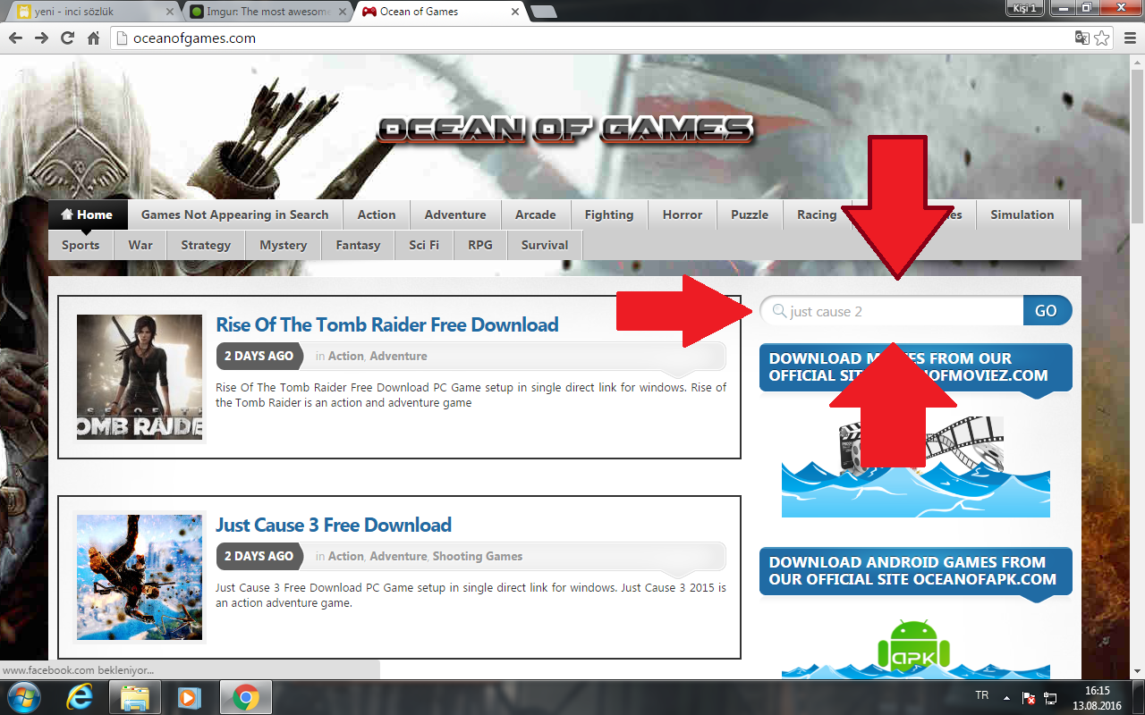 Şimdi Siteye girelim indirmek istediğiniz oyunu gösterdiğim yere yazın