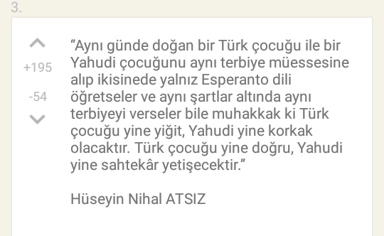 Arkadaş bu nedir? Sürekli aynı tantana, sürekli aynı cahiliyet. Biri gitmiş demiş ki Türk ile Ermeni cocugu karşılaştırma falan filan. Hadi bunu geçtim. Biri çıkmış biri asil diğeri huur cocugu diye diğeri bu yukarıdaki gördüğünüz sözü paylaşmış. Cocuklari da ayni şekilde yargiliyorsunuz ya ne diyim ben size. Hala o kucucuk beyniniz almıyor tabi sasirmiyorum artık. Hadi bir kaç huur evladı çıkmış böyle serefsizlikler yapmış diye bütün ırk mi huur çocuğu kesiliyor. Bizde de aynı durum tabi. Geçmişe bakıp kendinizi yuceltmekten başka birşey yapmıyorsunuz. Atalarımız neler yapmış bunlarla övünmek marifet değil onları örnek alarak ne kadar ilerleyebildigimizdir asıl marifet..